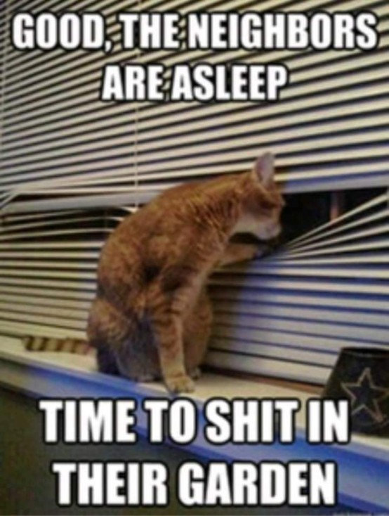 My neighbors are paranoid that my cat is out to get them !!!