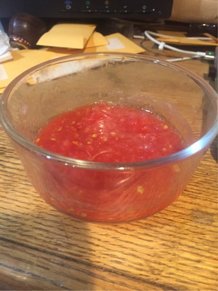 1/2 of the tomato was black inside. The was enough remaining to get a little bowl of mush. With a TSP soak should have enough seeds this summer to try the highest F number MegamuttD. These seeds are F4 generation.