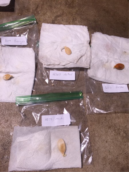 Of the 5 seeds I soaked, 4 have sprouted roots. Still waiting for the old 901 Hunt. I am happy.. Very low effort start..soak in water, put in damp paper towel in a baggy and place on top dresser at 70 degrees. First year..i stressed so much about trying for optimum germination environment. Now it is just let them grow. Time to transplant..no fancy custom mixtures this year, just happy frog with great white. I think with this years lack of time and no garden prep that 3/4 gallon of potentially less than optimum soil is not going to make a noticeable difference. Time saved now is worth much for the later part of the year.