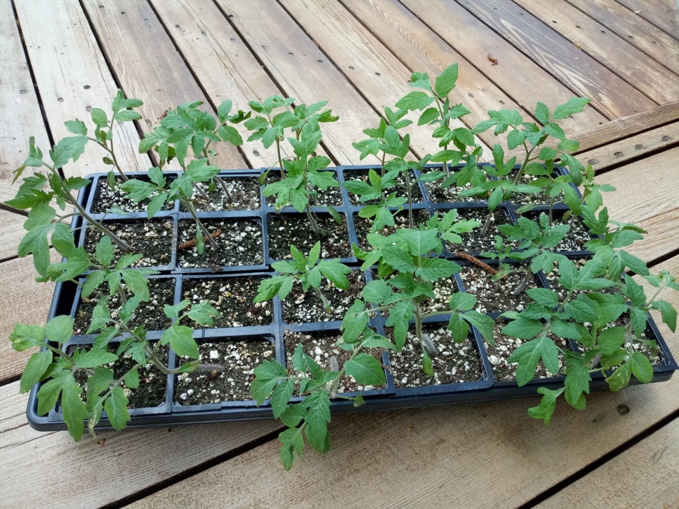 Hope to plant my competition tomatoes this weekend. They took a little beating from rain and wind but they still look ok.