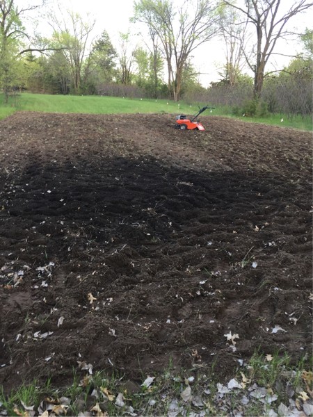 I found the time today to replace the carb on the tiller. Backup patch A has first till done. Best guess,this is a bit over 2000 sq ft. It is a bit shady, but will be home for my one remaining pumpkin plant and eating vegetables. Now instead of 3 inches of loam over sand , I have 6 inches of sandy loam over sand. Tomorrow will be first till for a tomato patch. I really should start some seeds soon.