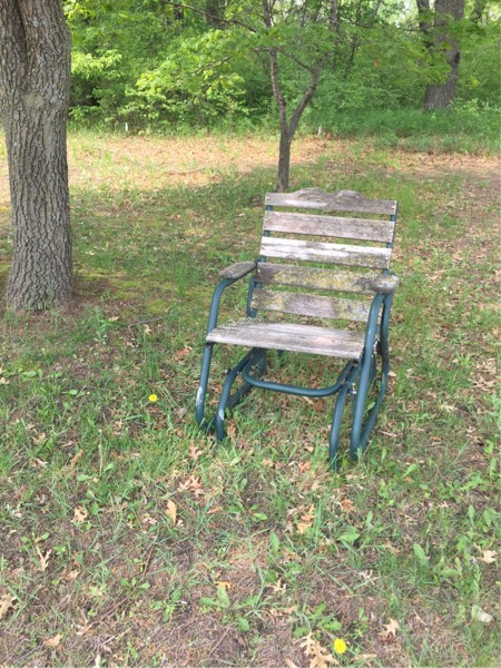 My pumpkin growing watching chair is now parked nicely under shade of an oak tree. I should have view of both patches. This has been my chair for 30 years. It is probably time for some maintenance.