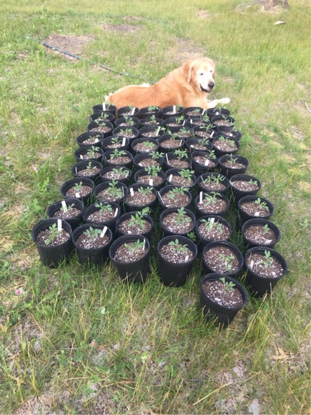 Before I could add the admendments, I had to wait for the stump grinder. Then I decided since the tomato patch was the shadiest, i could reduce that by cutting down two more trees. Then marking the area, I discovered 2x40 ft was going to be in air (this garden is elevated). Too much time hand shoveling, and I have the border I want. My body is sore..beer time. Maybe these remaining 55 plants will go in tomorrow. If so, will have to hope the deer have something else to chew on for awhile.