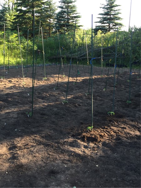 I managed to get the final of 54 tomato plants in the ground tonight. It is a day earlier than expected. Now to find the bandaid solution to the next problem...water. I can get water to the tomato garden. I was curious about the quality of water going there. I couldnt remember which box I had my old ph meter packed in so I ordered a new ph/tds meter. Since I do the winter hydro grows, a backup is not unreasonable. The new one arrived today. Testing the water straight from the well, the ph is 8.2 with high tds. I am guessing that a majority of the tds is CaCO2. I will be shooting myself in the foot trying to lower garden ph while watering with high ph. I left my phosphorous level low...I should be able to ph down with phosphoric acid. For long term...will be researching reverse osmosis units. For a planned 12,000 sq ft garden it would take, if my math is correct, about 1500 gallons per day. That is a big unit. The size of the unit is less of an issue than what to do with the grey water. I dont think my septic system would like it. This year..into storage tank, ph down and then pump to little area I have growing. Next year might be a bit more difficult.