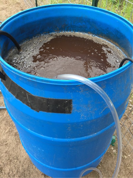 It all started with about nothing but sand. Then came much compost and nutrients. Now it is time for some microbiology. I am raiding winter grow supplies hard. After this brew is put on, I think that the 2000 sq ft tomato area will be about 30% ready to be super competitive. Hoping to gain a bit more percentage yet this season.