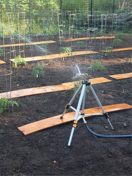 My watering system might not be high tech yet but good enough to water in 50 gallons of compost tea. Second batch is brewing. Basic setup on the garden will be done soon, then I might have to take a break. I still have yet to convert my old garden with it�s awesome soil back to growing grass. That is going to hurt.