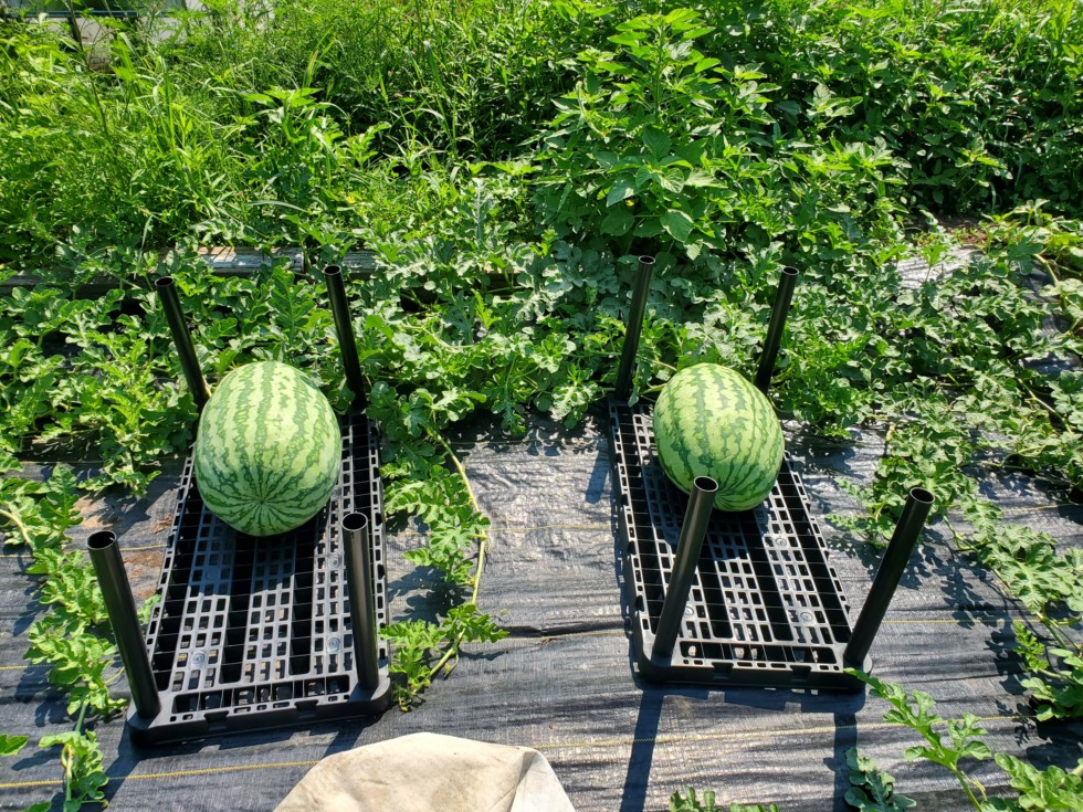 I have never grown melons before and really don't know what I'm doing, but I'm sure having fun! 300.5 Young on the left and 274.5 Bentley on the right.