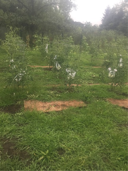 Hammocked a few more tomatoes today. I am at the borderline of my goal for this year of 3 pounds. At about 16 inches, growth slows way down. Just not enough good soil. Working on the future soil. Trying to figure out the best cost effective plan. The choice is between a few plants with great soil next year or many plants with great soil 3 years from now. Bobcat rental at $300 per day is a big negative. Compost delivered at a cost of $30 cu yd is second negative. 10 years, I will have it the way i want it. The path there is yet to be determined.