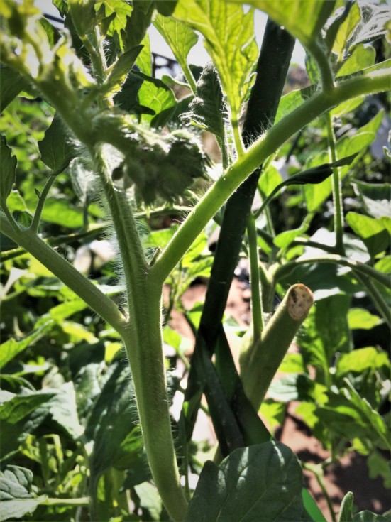 This year I can say for certain that all the largest megablooms I see on a plant comes from the first truss on the main, secondary, or here on a tertiary. You can see here I cut a secondary when I topped that plant and a tertiary is growing with it's first truss megabloom. There currently is a 25.00" tomato that'll be cut in a week or so. This one should be pollinating about that time just in time for fall weigh-offs!