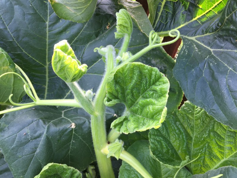 This is the tip of the main vine of my 681 Gansert. You can see how the leaves look kind of cupped? I don�t have any other places where the leaves look like this as I note as I am continuously trimming tertiary vines. I am unsure whether this is disease or nutrient deficiency.