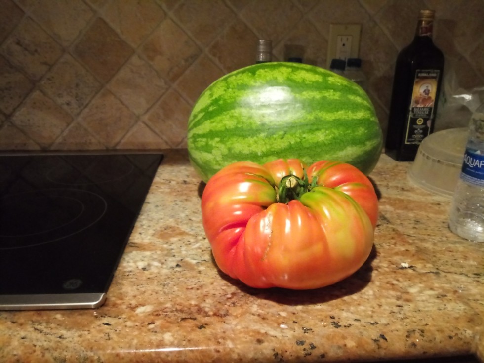 Here is my first tomato this year. How big is this sandbagers tomato ??? Lol... :-)