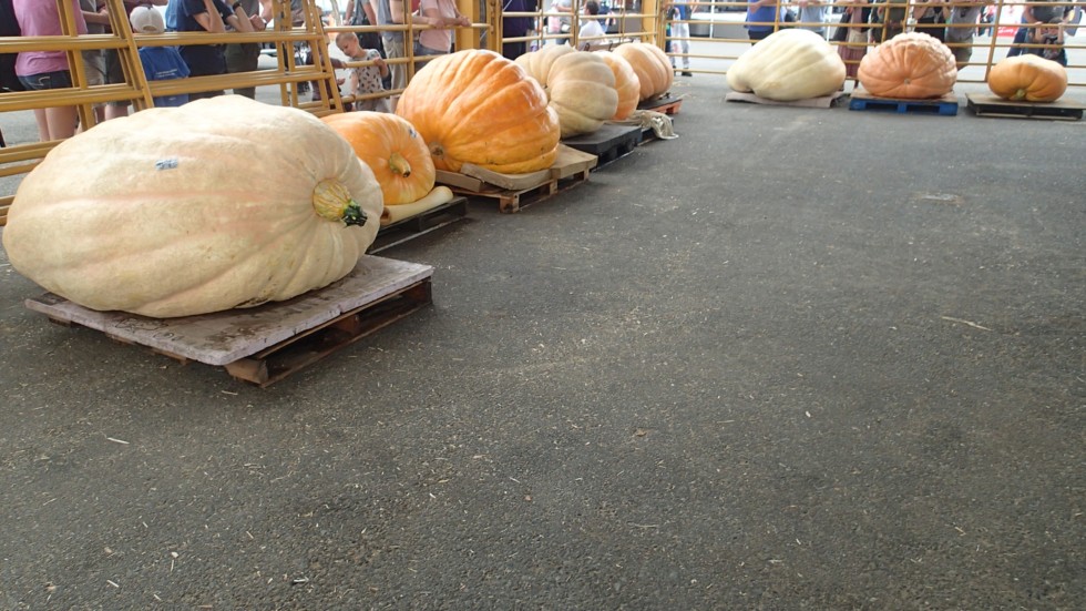 The weigh-off entries before Brandon arrived. Brandon won the Howard Dill Award, then turned around and gave the award to the Junior Grower! Great job for both of you! I actually shed a tear with that, don't tell anyone, OK? lol
