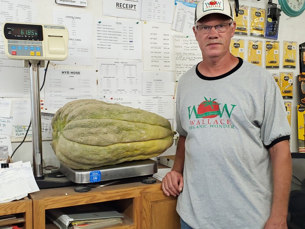 Well I re-set the Iowa State record this morning on my biggest cantaloupe. 61.85 lbs. A big thank you to Dave Bennett for letting me grow your seed and advice. Also thank you Jeremy Lindley, Nick Mccaslin, Danny Vester and Charles Daniel Bentley for all of your advice, tips and encouragement. These guys are all class acts and great growers from Iowa, Arkansas, North Carolina and Alabama. Thank you Ron Wallace for your products that I used from Wow Wallace Organic Wonder. For never growing lopes before I'm definitely happy with the outcome!