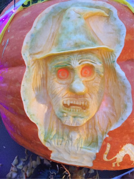 A better look at the Wicked Witch of the West, complete with fangs, glowing eyes & turkeyneck.