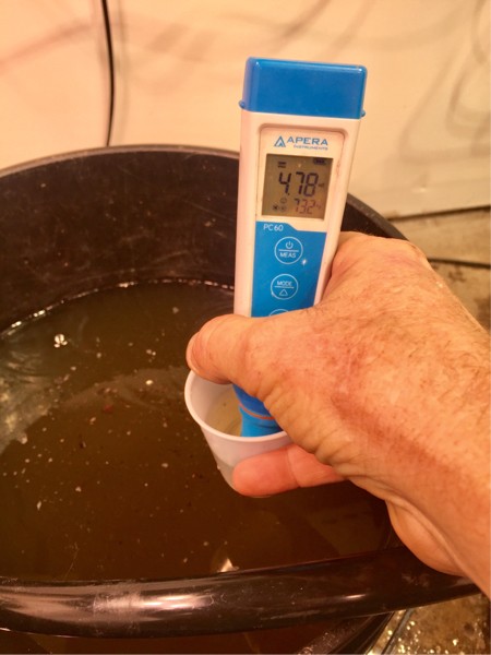 Runoff EC has dropped in 1/2. In this size pot it took what is equivalent to 6 inches of rain to do it. It will take a few days for the pot to dry out. Will recheck then for further adjustment.