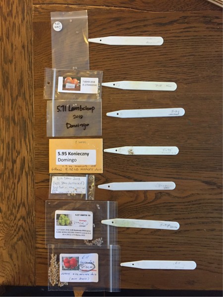 The tomato line up - some for the little greenhouse, some for 5 gallon challenge and some to play with breeding crosses.