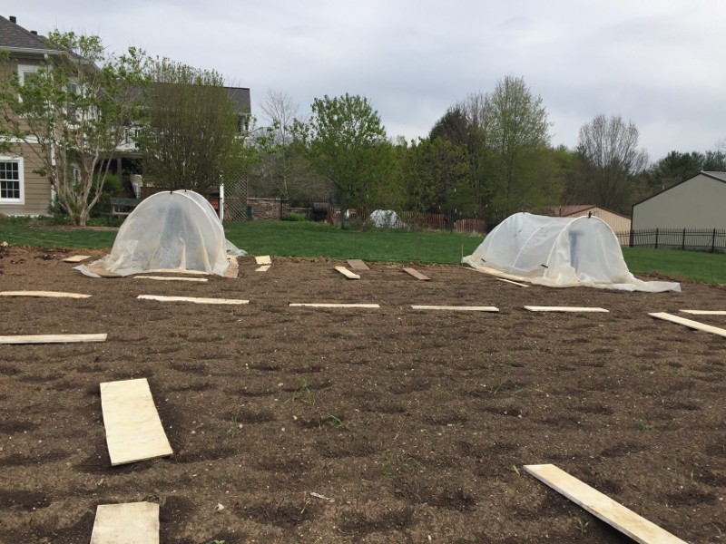 My 3 hoophouses erected today, the 1 in the distance is dead center.