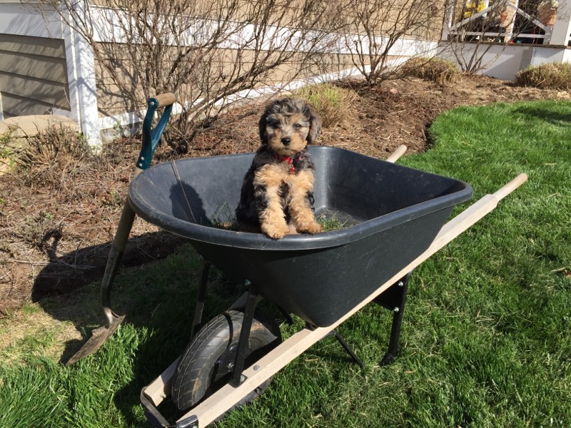 She is a 10 week old Aussiedoodle that I am sure will at first be a hindrance to my efforts, maybe even a terror.
