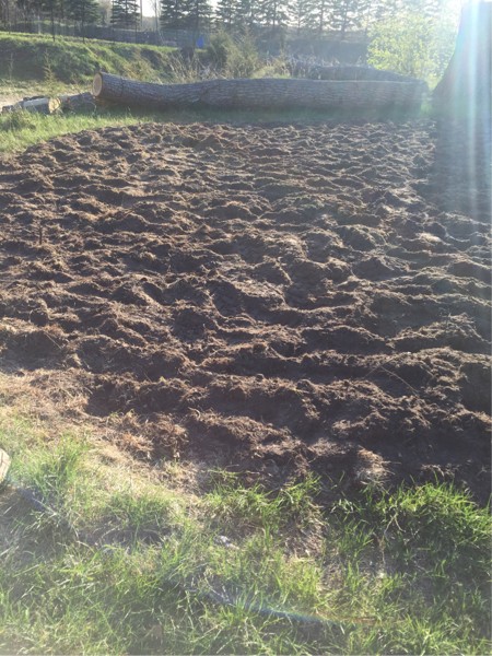 Wilie, this is where the 97 pounder is going to go. It is an area about 13 ft x 20 ft, nestled between tree trunks. Perfect for a 150 plant. I have so far added about a yard of old composted manure, sop,epsom salt and sulfur. My first year, I started seeds the 3rd week of May. Since then, I have started always about May 1st. My soil temp 6 inches down is still 54 degrees. Without cable heaters, putting a plant in the ground just means it sits dormant for a few weeks.