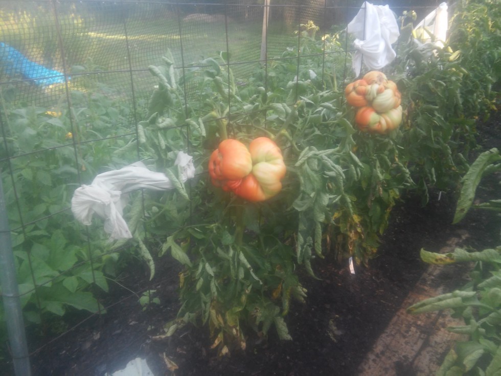 Throwback Thursday. These are my first two 6 lbs tomatoes grown on 30" tall plants with only 10 to 12 leaves per plant