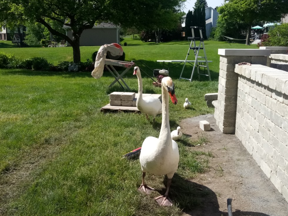 I had a family of swans come check out the brick paver patio that i was putting in.