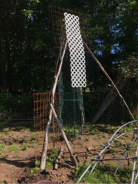 And last but not least my redneck locust post tri pod gourd trellis is ready for action. Hell if I get a world record doing and I need more height I can walk it up to give me more room. A couple of my 82 inch gourds are ready to take off.