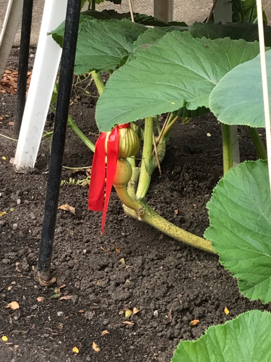Pumpkin on the main that I pollinated yesterday. Removed the petals shortly after pic taken.