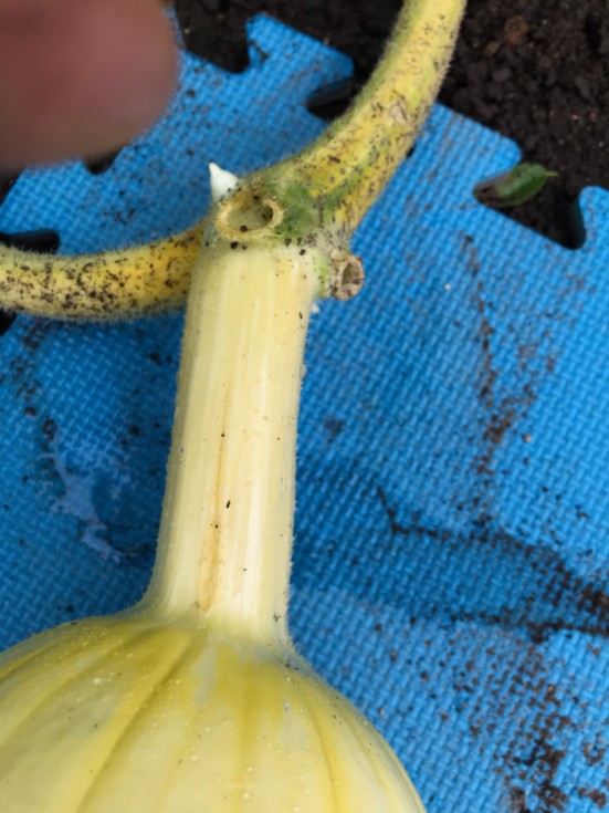 Crack developing on the stem on the main vine pumpkin. 6 DAP Don't know if this is a serious game changer or not. Not enough experience to know. Will monitor and search for help.