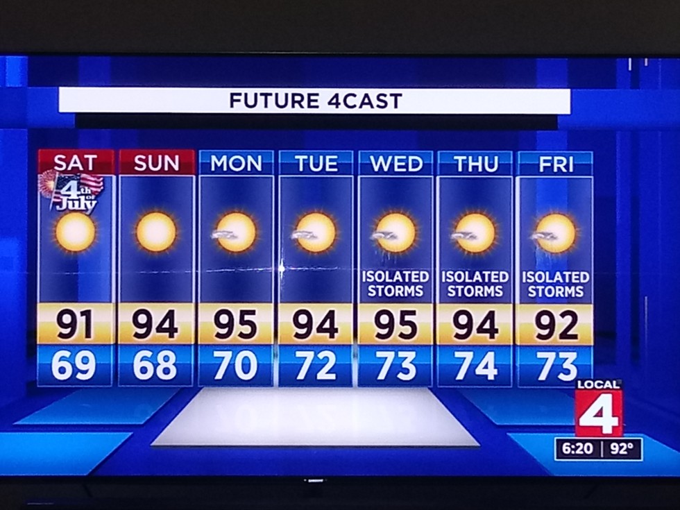 It's going to be a HOTTT summer this year the last 2 days were 90+ and the nent 7 days will be in the 90s. The record for the month of July is 17 days of 90� i think we might have a chance this year