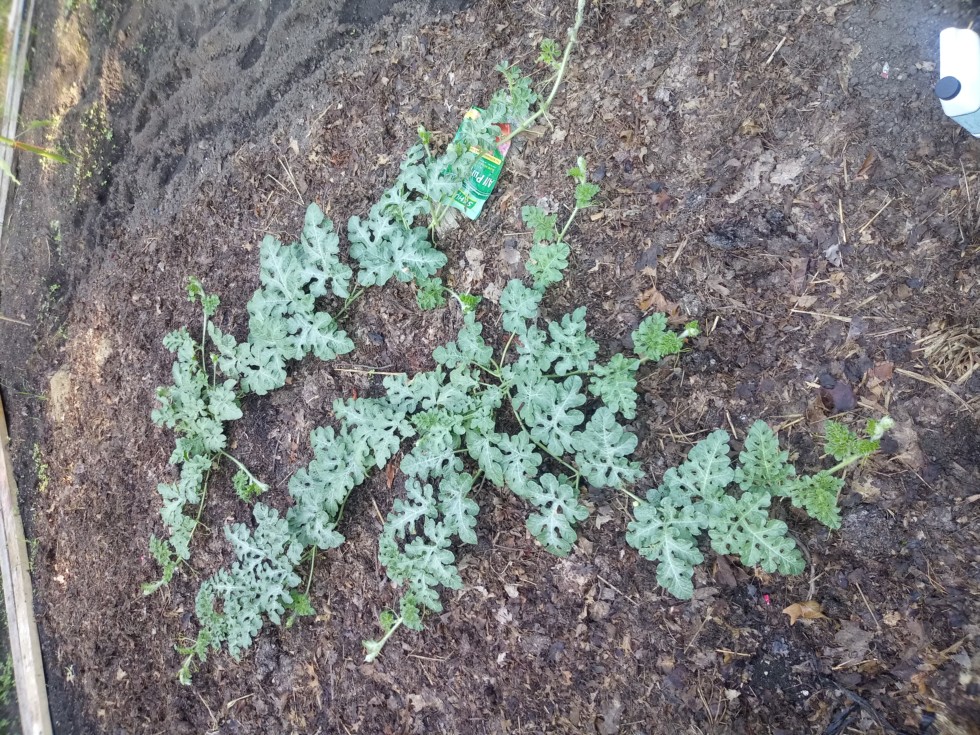 Growing a couple of giant watermelon off to a late start but the plants are starting to move now