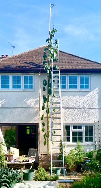 About 20ft now, rigged some support for the head. It could be more solid, surprisingly how wobbly things being in 23 ft plus lengths! But better than unsupported. I�d like to save the seeds off this one. :)