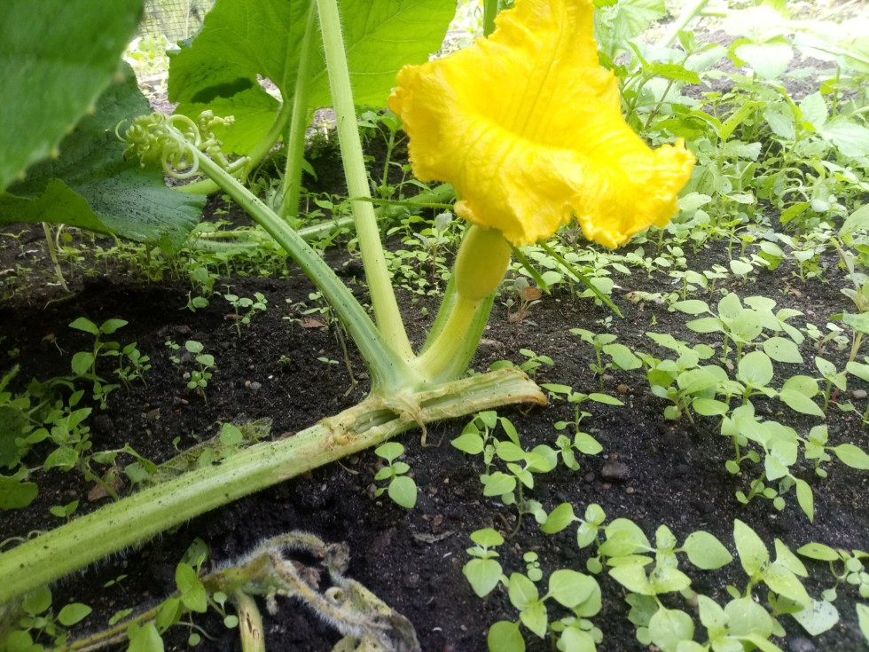 Well this is my first pumpkin to make it to flower and its on a chewed off tirchiary vine. Unfortunately for the last 2 weeks a combination of squirrels and chipmunk have pluned off all the tips and pumpkins on the main and secondarys so now i have to set my pumpkins on tirchiary vines ???
