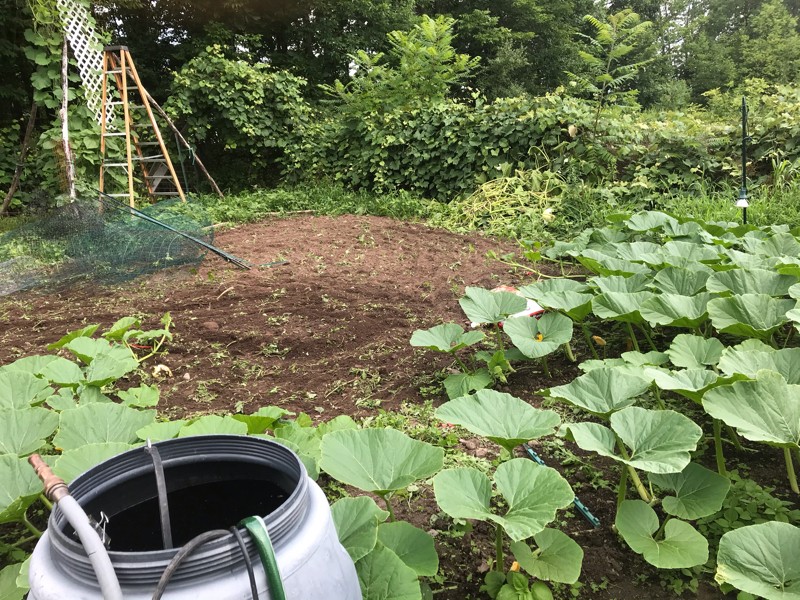 What a heat wave we are riding this year. The 2261 Schmitt plant just wasn�t doing it for us. Nothing would stay set and abort around volleyball size. Val made the suggestion to pull it out and we did. The plan is to let the main and and a few secondaries from the 1885 werner plant fill in the area.