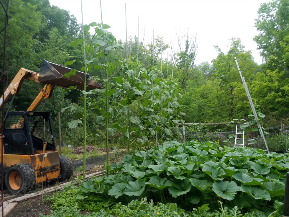 I need to tie up my sunflowers again as they like to twist like pretzels when given a chance. The tallest one is now 13'-4" tall and the shortest one is 11-6"