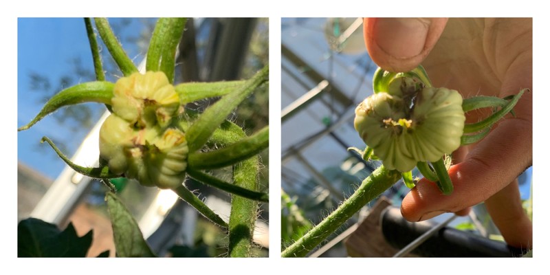 Two sets on 5.71 Lampchop. Slight temporary darkening on one where I removed sepals too see where it was joined (or not). Yet to cull to one, but would like to do so over next few days. The right slightly older of the two. Pics from a few dats ago