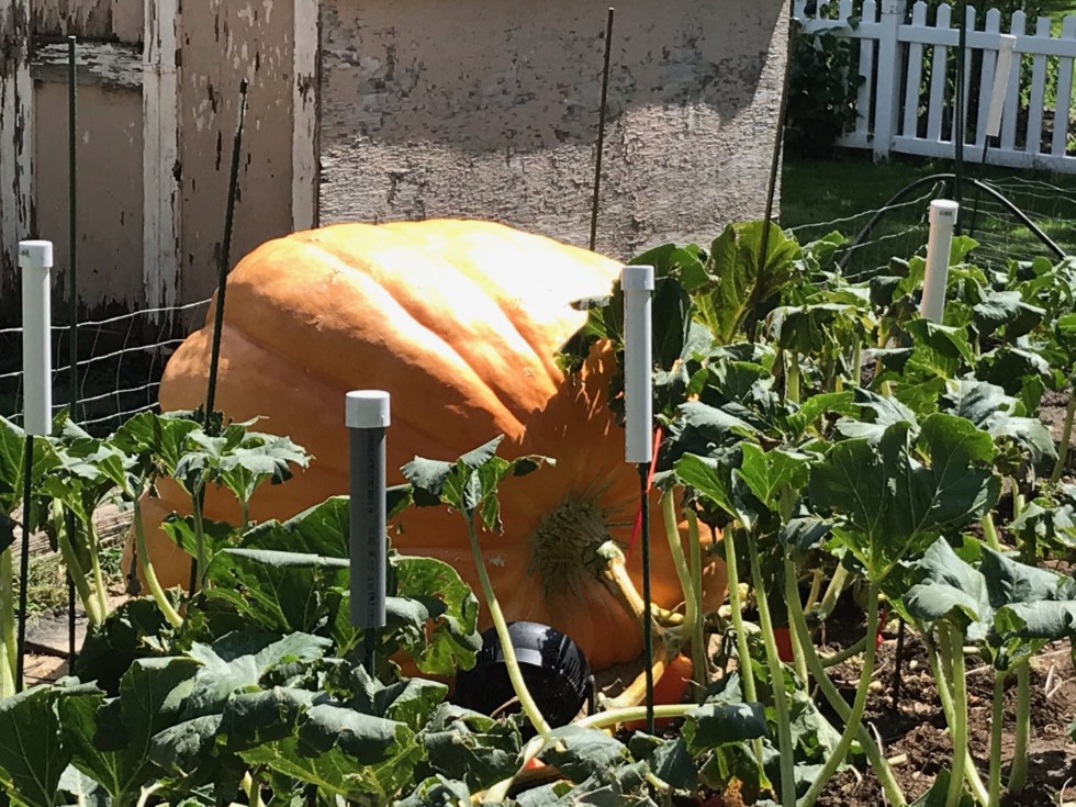 Great news, she's still pushing sand after the hail storm. Appears like my 30+ lbs/days are over, but she still averaged 17.6 lbs/day over the last three days since the hail storm. Better news is that if she keeps on her current pace, I will break 1000 lbs on Day 51!! Here she is today from a different angle now that over half the leaves are gone and you can easily see the stem. Here she is today.