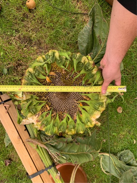 Sunflower head is 14 inches across, and 18 inches if you include sepals.