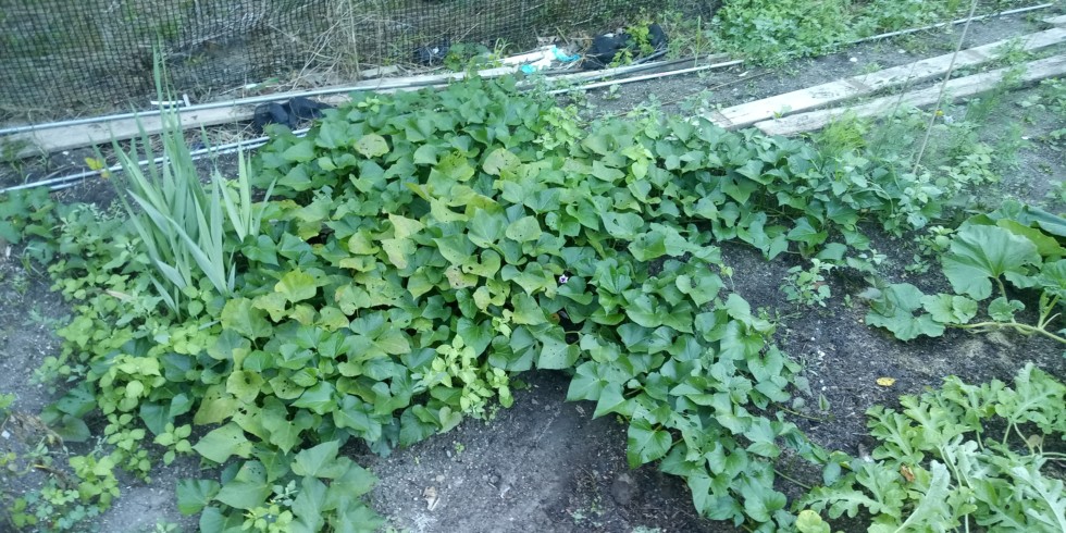 If you have never seen sweet potato plants before they grow like a vining ground cover