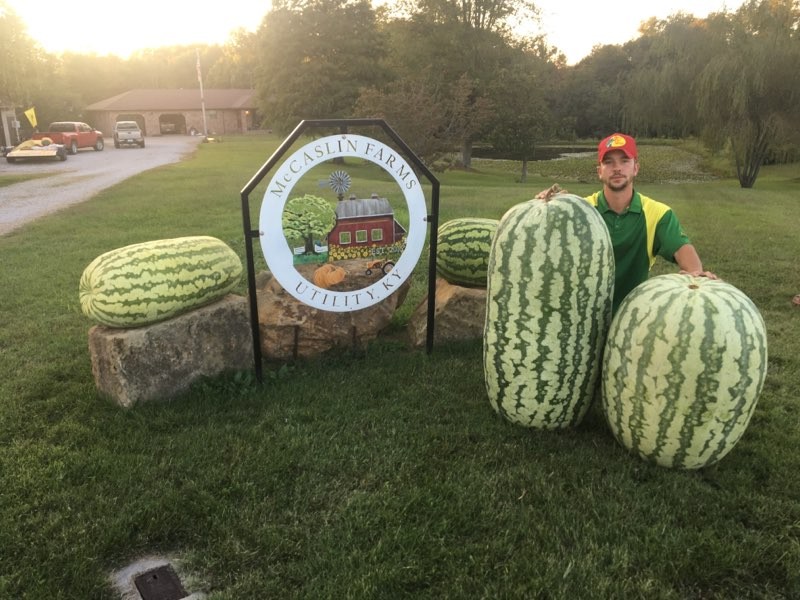 277 and 227.5 weighed at Robert's family farms saturday. Lost stump on 277 at day 40 so had to limp along to day 100. Which was a challenge in this wet weather. Could have been a good one considering it was over 200 pounds on day 40 when stump blew. Long 60 days after that. The 227.5 was exb and was an experiment in a hot house. Temps averaged well above good watermelon growing temps in there. So pretty satisfied to get to 227.5. Learned a lot for growing in my new high tunnel for next year. Tip of the day: never put all of your eggs in the same basket and dont beat a dead horse. Try new things and experiment.