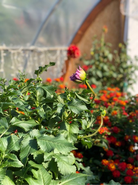 Most of the flowers got moved into the greenhouse...the late season dinner plate dahlias are looking good. (Finally)