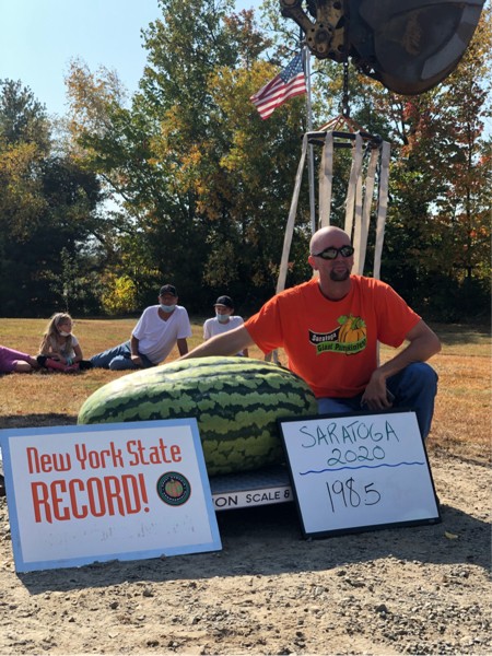 Huge congrats to Andy wolf for breaking the ny watermelon record!!!!...Biggest one I�ve ever seen in person. So cool Andy!!!!