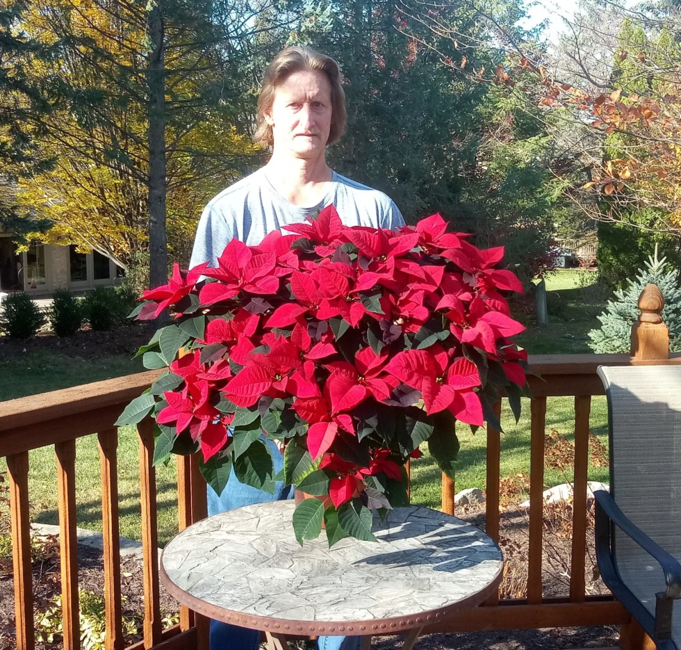 Last year on November 11 we had 9.5" of snow on the ground today we are in the 70s. It looks weird to have a poinsettia this early without snow on the ground !