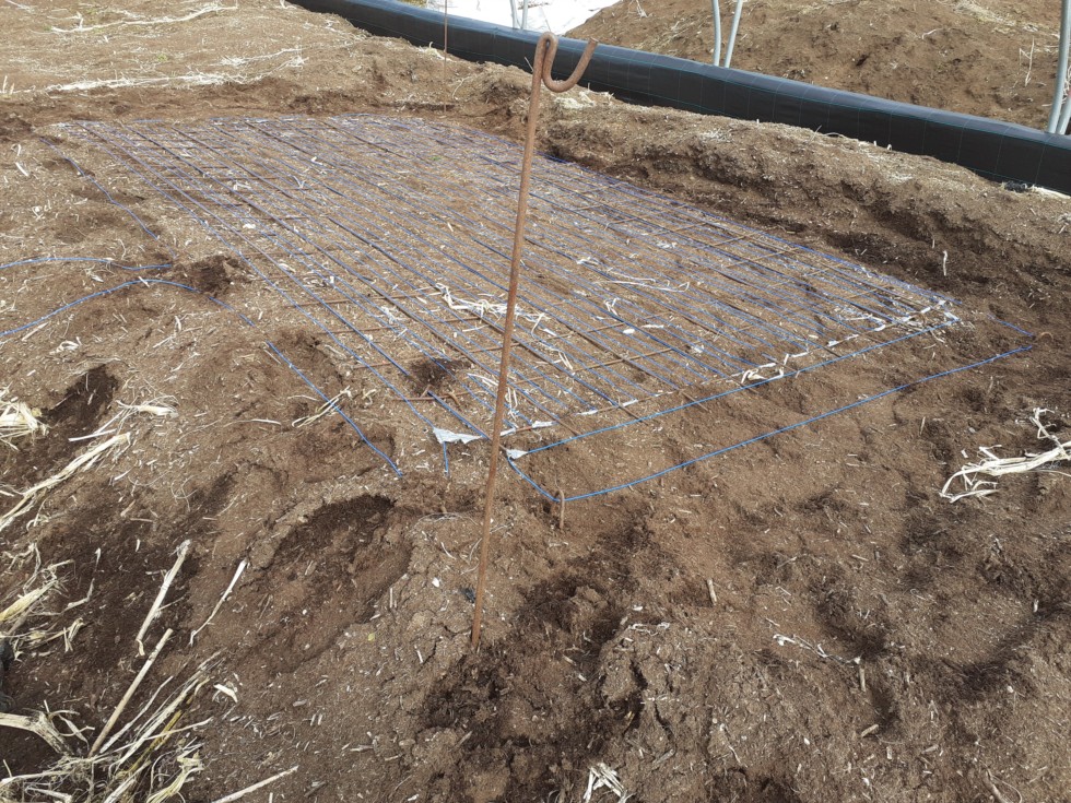 Most of the soil-warming cables installed, attached to reinforcing grids this season to give a more uniform result, should allow an early planting date whatever the weather has in store.