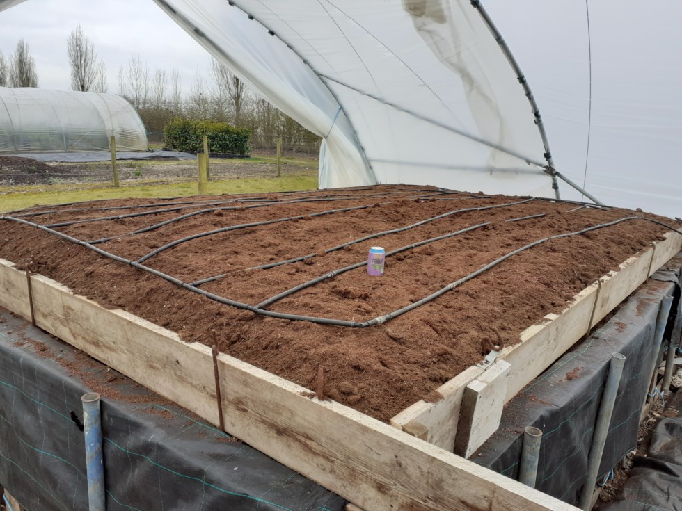150sqft patch is ready to go. Soil heating cable in, topped up to a depth of 4ft with spent coir, drip irrigation installed and fertiliser applied. 934.3 Leach 2021 (HDA) will be planted in about 10 days time with a mini hoophouse to raise air temperature. Still lots to do elsewhere, but reassuring to get something completed.