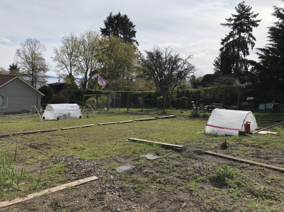 Yeah, my plan to build another more permanent larger hoophouse around the lower hoop is gonna wait till we find some more time. Instead, We are making each end of the lower hoop longer to give the already growing back to back 1911 Chan plants more room to lie down and expand.
