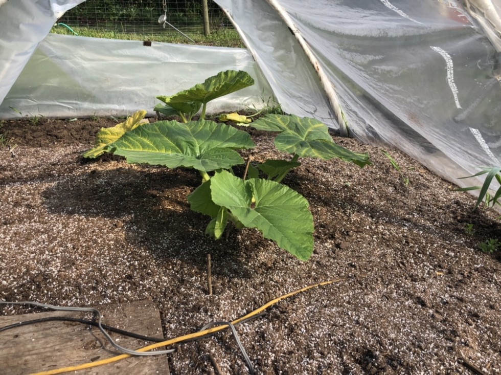 Off and running, the 1911 Richmond Dave plant is doing well. The 2118 Barron was just planted in its mini hoophouse a few days ago, no heater in there, just the soil cables.