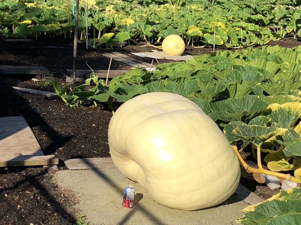 1911 Chan in front and 2118 Barron in the back. The 1911 pumpkin is evolving in shape, I think we dodged the bum over blossom, but time will tell. Consulted with my buddy SoCal Grower for advice on stem/vine adjustments and sliding the young pumpkin backwards to straighten up a main vine. Thanks Chris!!