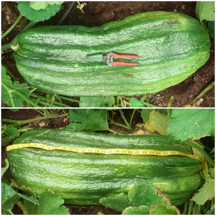 Anyhow, the top fruit was an early set for our local show later this month. About 30 ins long, should be a decent size in 10 days time. Kinda ironic that the bottom fruit is just a set I missed amongst the foliage; it's longer, fatter, and more uniform! Both are on the 202 Baggs. Target this year is to get one over 100 lbs, and I have seven plants to achieve it.