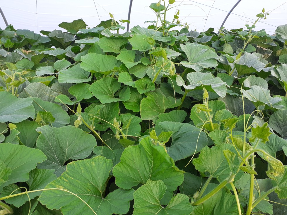 Squash, this is the 1721 Segaert, the EGVGA seed of the year. Had problems getting a set, and the keeper started growing distorted, nothing would set to take it's place so I was stuck with it. After a few weeks I lost interest.. ....and this is what happens when nature is left to it's own devices! 15 days without any vine pruning.... it was impossible to even catch a glimpse of the fruit.