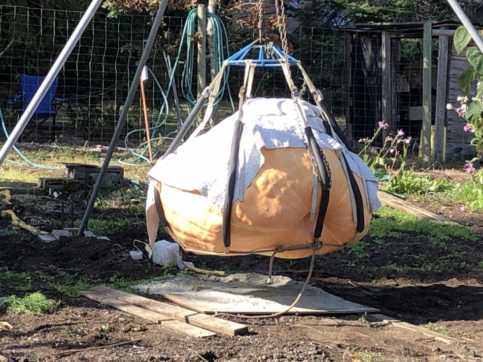 Great idea from pumpkinpal2 for protecting the pumpkin when lifting and loading. In the past, the straps on my lifting ring would dig in and damage the pumpkins, but that should no happen no longer with these added foam pipe insulators. Thanks again EG, great idea.